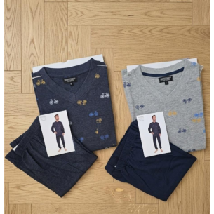 Pyjashort pour homme deux pièces, imprimé à col v et manches curtes. Collection d'été.